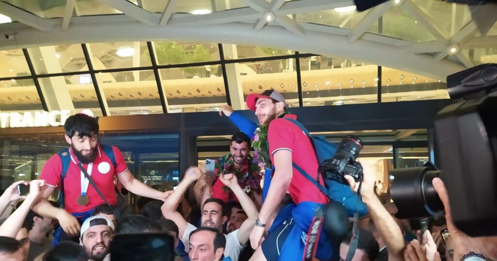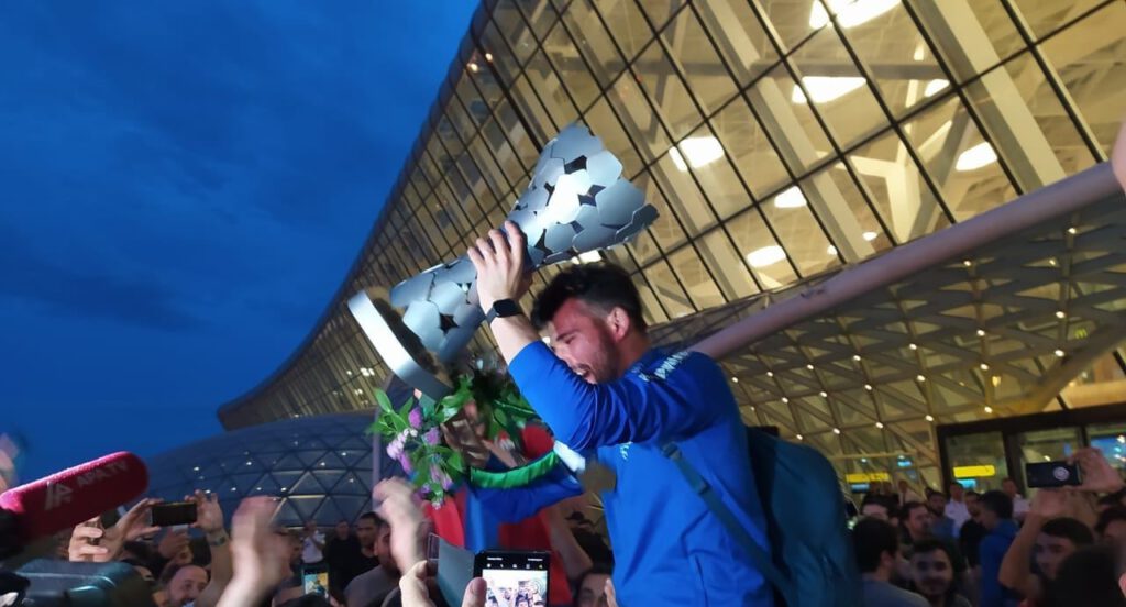 İdmançılarımızı hava limanında azarkeşlər və media nümayəndələri qarşılayıblar.