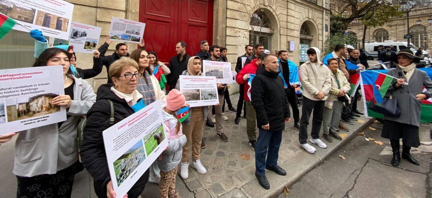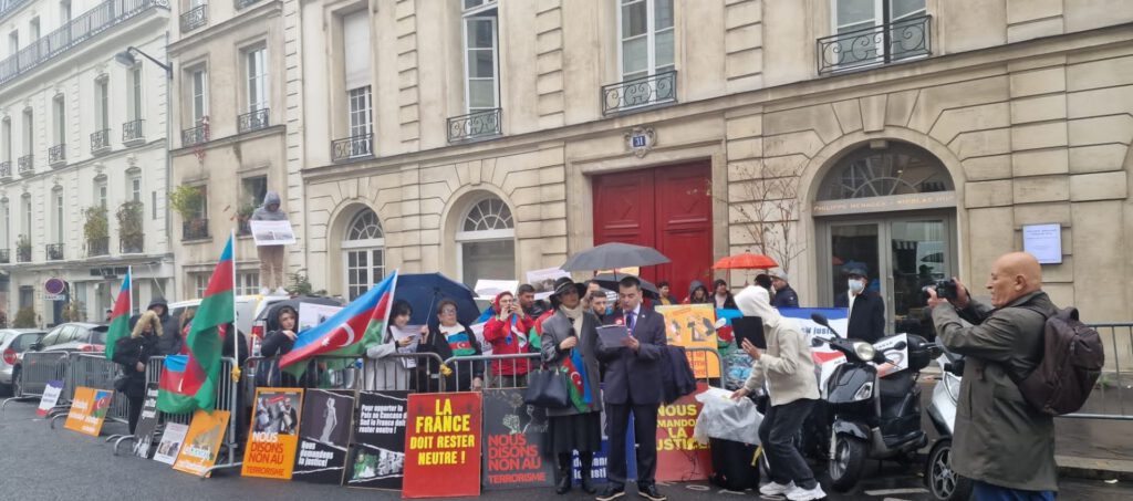 Azərbaycan diasporunun nümayəndələri Fransa Senatının qarşısında etiraz aksiyası keçirirlər.