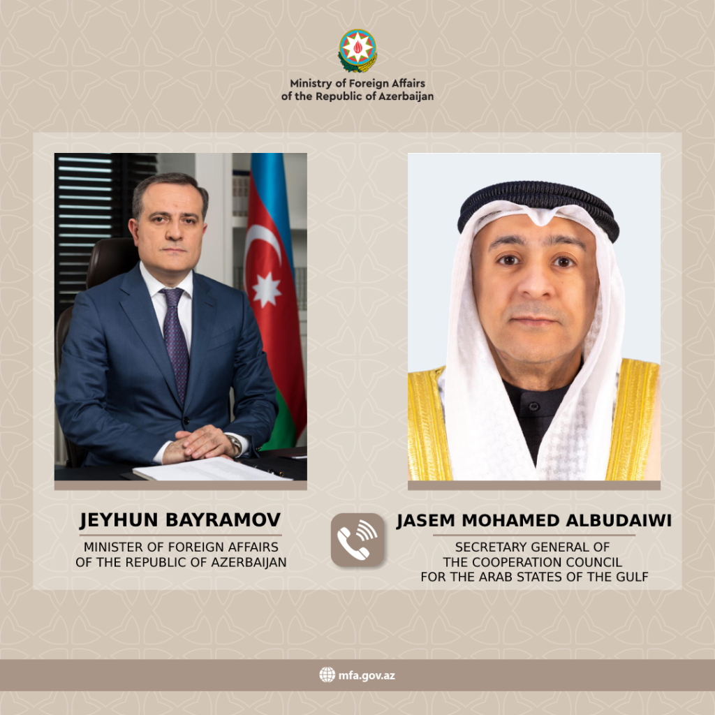 18 aprel 2023-cü il tarixində Azərbaycan Respublikasının xarici işlər naziri Ceyhun Bayramov ilə Körfəz Əməkdaşlıq Şurasının (KƏŞ) Baş katibi Casim Əl-Budeyvi arasında telefon danışığı baş tutub.