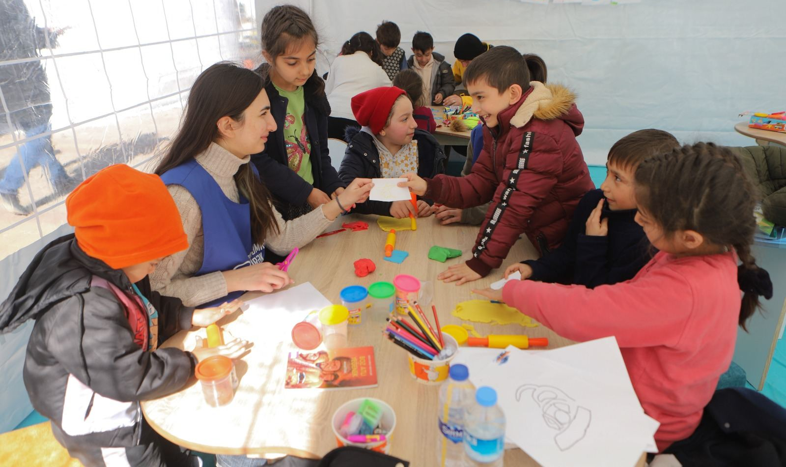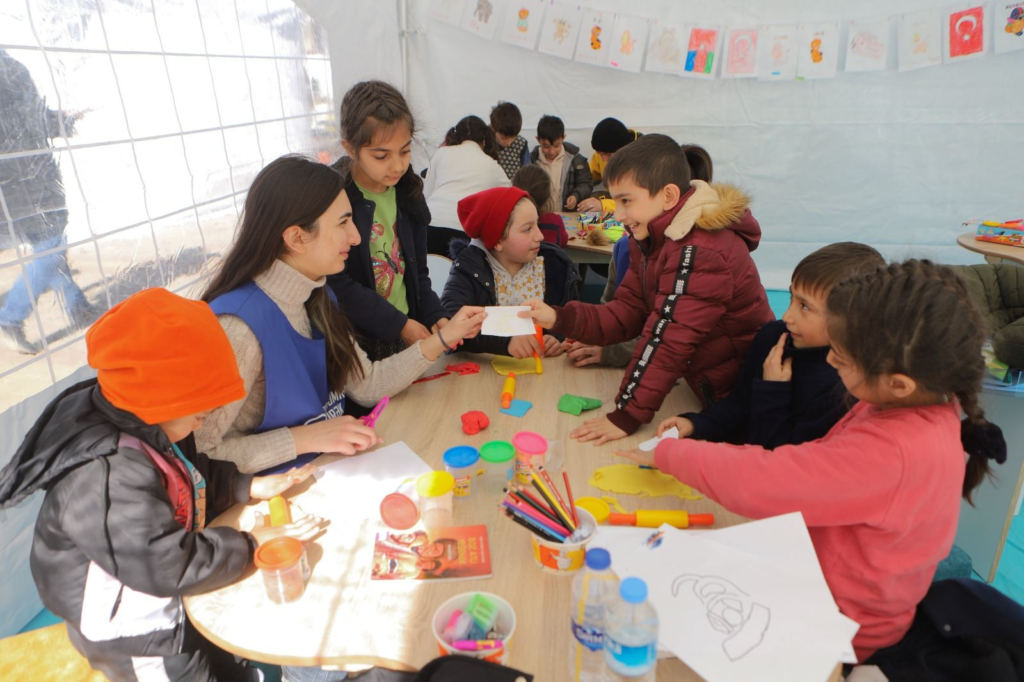 Bununla yanaşı, zəlzələdən zərər çəkmiş uşaqların asudə vaxtının səmərəli təşkili məqsəd ilə uşaqlar üçün nəzərdə tutulmuş iki çadırda könüllülərimiz xidmət göstərib. Əlavə olaraq, Kahramanmaraşın Sütçü İmam Universitetinin ərazisində yaradılmış çadır şəhərcikdə də yerli əhaliyə çay paylanılıb və iki çadırdan ibarət uşaq bağçası qurularaq istifadəyə verilib.