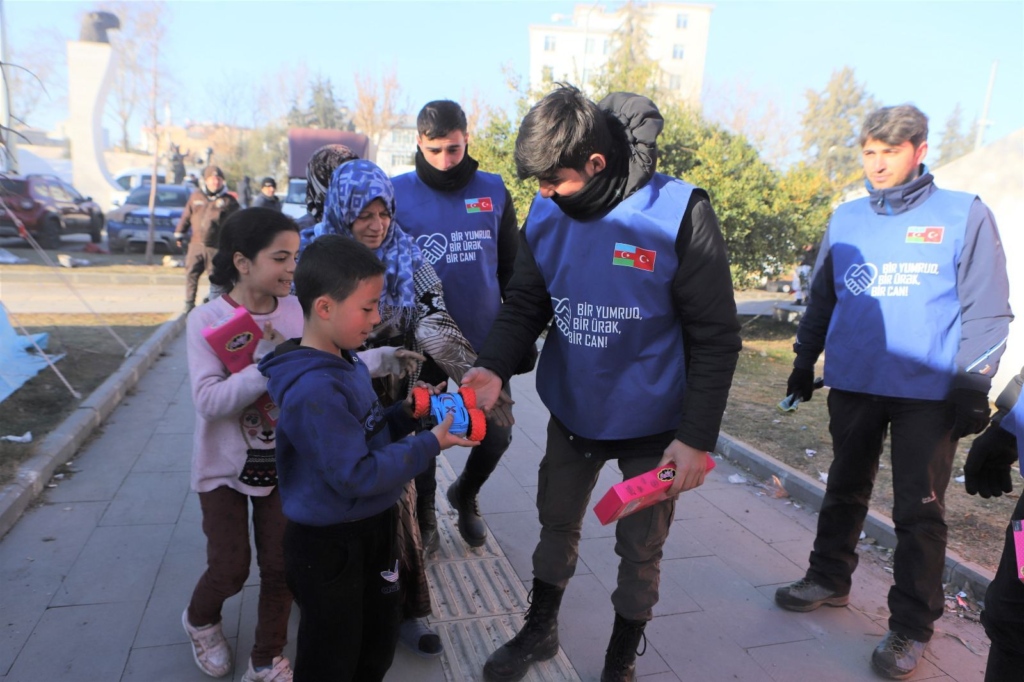 Böyük dağıntılara və çoxsaylı insan tələfatına səbəb olmuş zəlzələninin yaratdığı kədəri Türkiyə xalqı ilə birgə yaşayan dövlətimiz və xalqımız faciənin ilk saatlarından səfərbər olub. Qardaş ölkə ilə dostluğumuzun və həmrəyliyimizin təcəssümü olaraq zərərçəkənlərə kömək etmək məqsədilə Türkiyəyə yollanan Azərbaycan könüllüləri Kahramanmaraş və Hataydan sonra Adıyamana da gedərək fəaliyyət zonasını genişləndirib, bu ərazilərdə yerli əhali, habelə həssas vəziyyətdəki uşaqlara dəstək üçün müxtəlif xidmətlər həyata keçiriblər.
