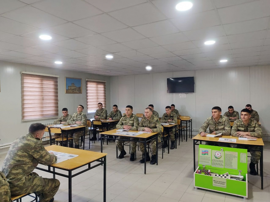 Bu ilin hazırlıq planına uyğun olaraq şəxsi heyətin maarifləndirilməsi üzrə tədbirlər çərçivəsində Azərbaycan Ordusunun hərbi qulluqçuları ilə ictimai-siyasi hazırlıq məşğələləri keçirilir.