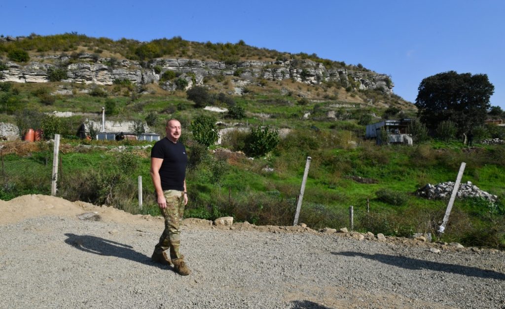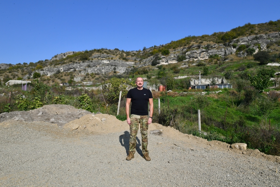 Dövlətimizin başçısı kəndin ərazisinə baxış keçirib.