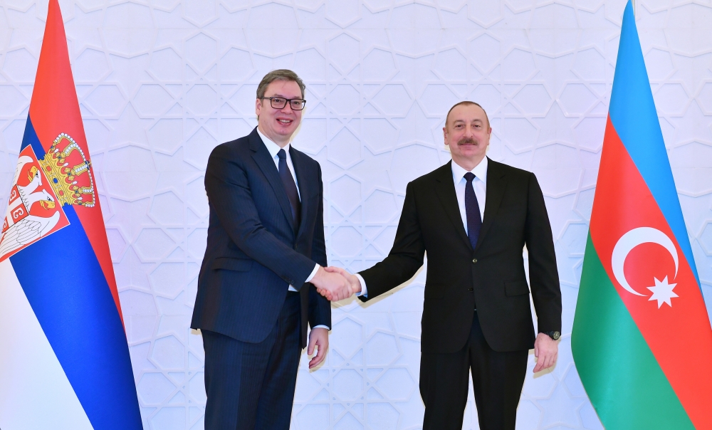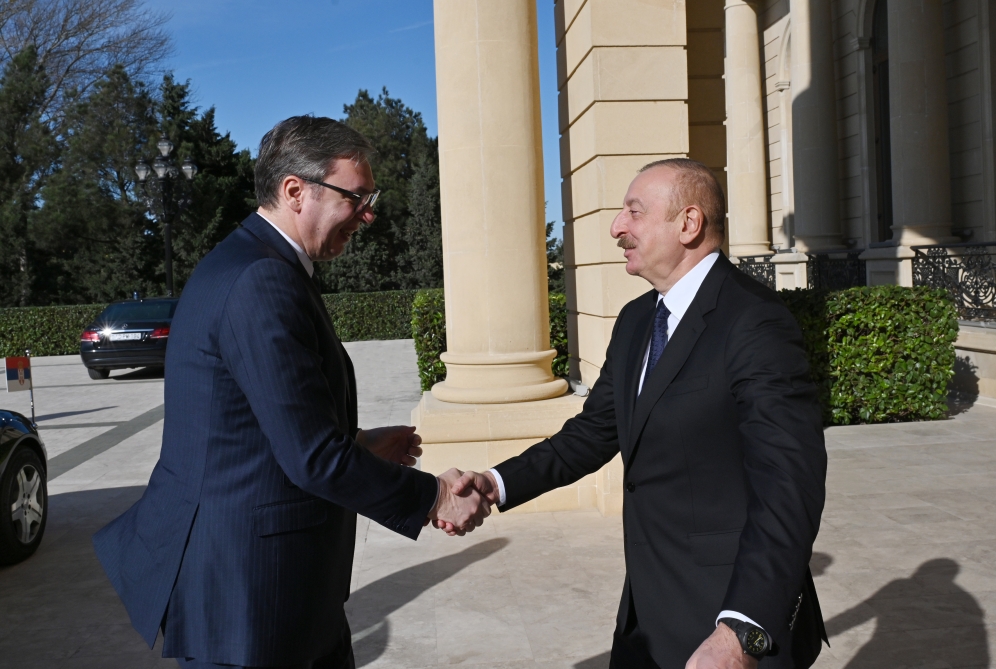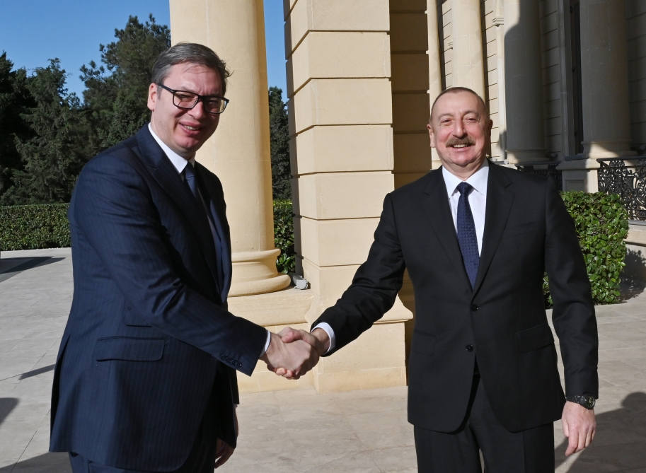 Azərbaycan Prezidenti İlham Əliyev Serbiya Prezidenti Aleksandar Vuçiçi qarşılayıb.