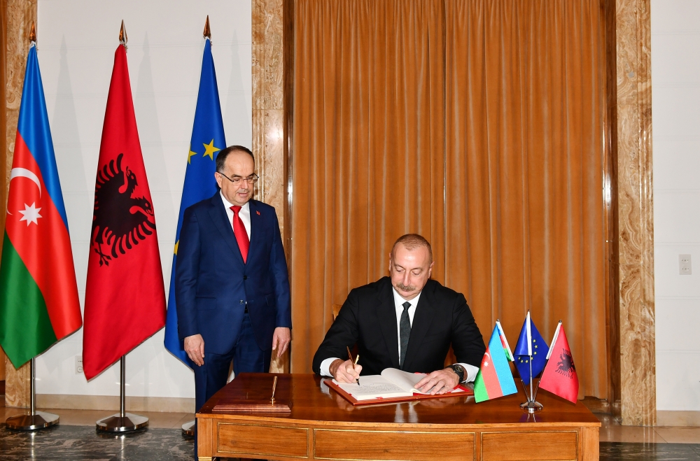Azərbaycan nümayəndə heyətinin üzvləri Prezident Bayram Beqaya, Albaniyanın dövlət və hökumət nümayəndələri isə Prezident İlham Əliyevə təqdim edilib.