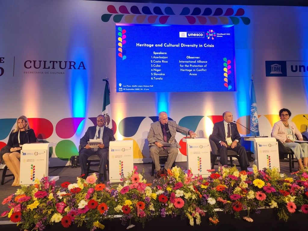 Mexiko şəhərində davam edən “Mondiacult 2022” konfransı çərçivəsində mədəniyyət naziri Anar Kərimov “İrs və mədəni müxtəliflik böhran dövründə” mövzusuna həsr olunmuş sessiyada çıxış edib.