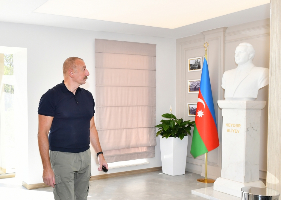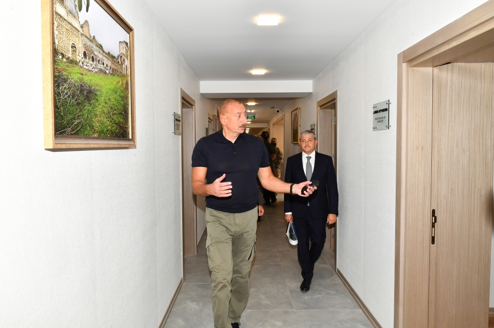 Azərbaycan Respublikasının Prezidenti İlham Əliyev və Birinci xanım Mehriban Əliyeva Azərbaycan Respublikası Prezidentinin Şuşa rayonunda xüsusi nümayəndəliyinin binasında yaradılan şəraitlə tanış olublar.