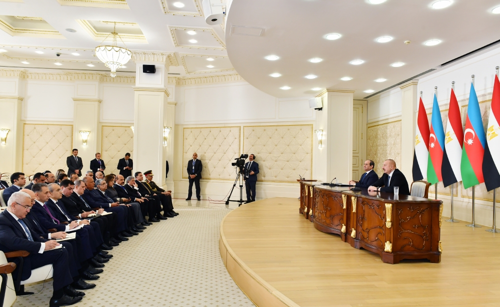 Yanvarın 28-də sənədlərin imzalanması mərasimi başa çatdıqdan sonra Azərbaycan Respublikasının Prezidenti İlham Əliyev və Misir Ərəb Respublikasının Prezidenti Əbdülfəttah Əs-Sisi mətbuata bəyanatlarla çıxış ediblər.