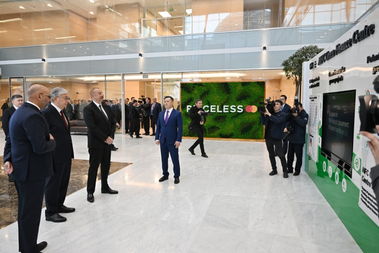 Aprelin 10-da Azərbaycan Respublikasının Prezidenti İlham Əliyev və Qazaxıstan Respublikasının Prezidenti Kasım-Jomart Tokayev Astana Beynəlxalq Maliyyə Mərkəzində olublar.