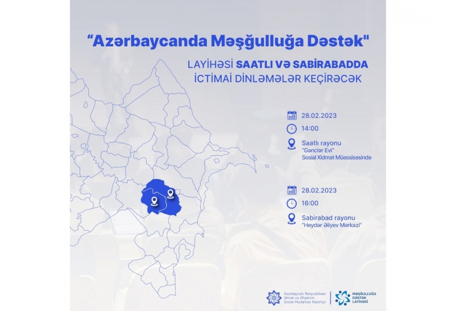 İctimai dinləmələr 2023-cü il fevralın 28-i saat 14:00-da Saatlı rayonunda “Gənclər Evi” sosial xidmət müəssisəsində, Sabirabad rayonunda isə həmin gün saat 16:00-da Heydər Əliyev Mərkəzində keçiriləcək.