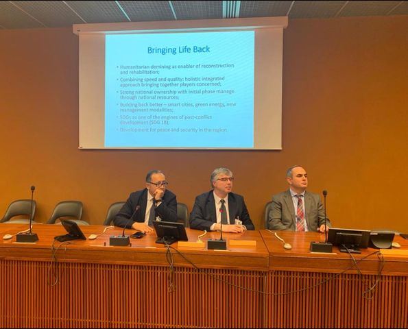 Agentlikdən verilən məlumata görə, görüşdə nümayəndə heyəti çıxış edərək Azərbaycanın mövqeyini təqdim edib, ölkəmizin üzləşdiyi mina problemi, hökumətin apardığı genişmiqyaslı humanitar minatəmizləmə fəaliyyəti, keçmiş məcburi köçkünlərin öz torpaqlarına qayıtması üçün bərpa və yenidənqurma işləri barədə məlumat verib, aparılan minatəmizləmə əməliyyatlarının dayanıqlı inkişafa xidmət etdiyini vurğulayıb.