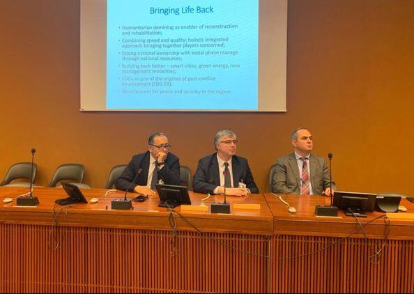 Agentlikdən verilən məlumata görə, görüşdə nümayəndə heyəti çıxış edərək Azərbaycanın mövqeyini təqdim edib, ölkəmizin üzləşdiyi mina problemi, hökumətin apardığı genişmiqyaslı humanitar minatəmizləmə fəaliyyəti, keçmiş məcburi köçkünlərin öz torpaqlarına qayıtması üçün bərpa və yenidənqurma işləri barədə məlumat verib, aparılan minatəmizləmə əməliyyatlarının dayanıqlı inkişafa xidmət etdiyini vurğulayıb.