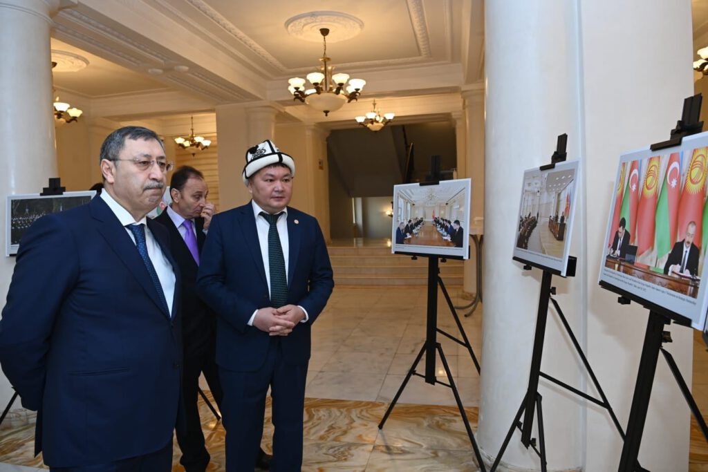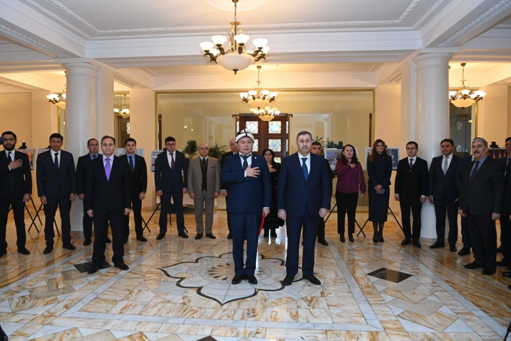 Sonda tədbir iştirakçıları Azərbaycan və Qırğız Respublikası arasında diplomatik münasibətlərin 30 illiyinə həsr edilmiş sərgi ilə tanış olublar.