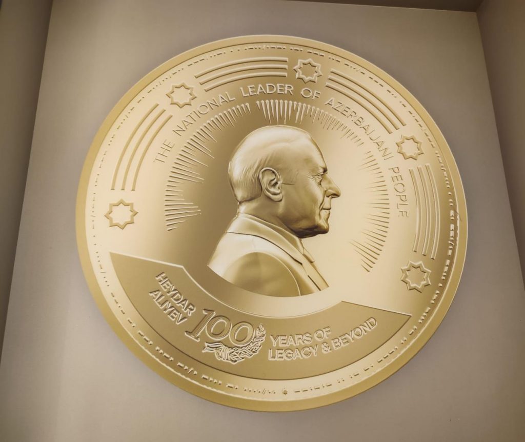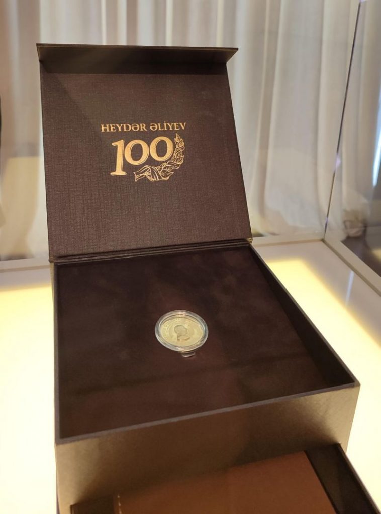 17 noyabr 2023-cü il tarixində “AzerGold” Qapalı Səhmdar Cəmiyyəti (QSC) tərəfindən Ümummilli Lider Heydər Əliyevin anadan olmasının 100-cü ildönümü münasibətilə istehsal edilmiş “100 il və onun fövqündə bir irs” adlı qızıl sikkənin təqdimat mərasimi keçirilib.