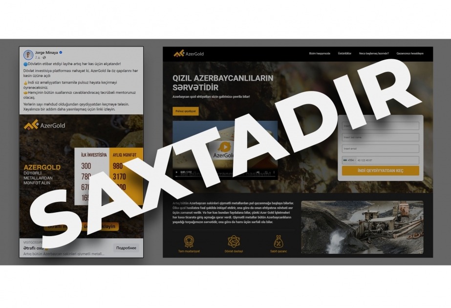 Son dövrlər elektron resurslara qarşı rəqəmsal risklərin qlobal səviyyədə vüsət aldığı bir şəraitdə nüfuzlu şirkətlərin, müxtəlif dövlət və özəl sahibkarlıq müəssisələrinin adından sosial media resurslarında saxta reklam kampaniyaları təşkil edilir. Oxşar kiberdələduzluq aktlarının “AzerGold” Qapalı Səhmdar Cəmiyyətinin (QSC) də adından törədildiyini nəzərə alaraq, ictimaiyyəti bir daha diqqətli olmağa, saxta reklam kampaniyalarına aldanmamağa çağırırıq.
