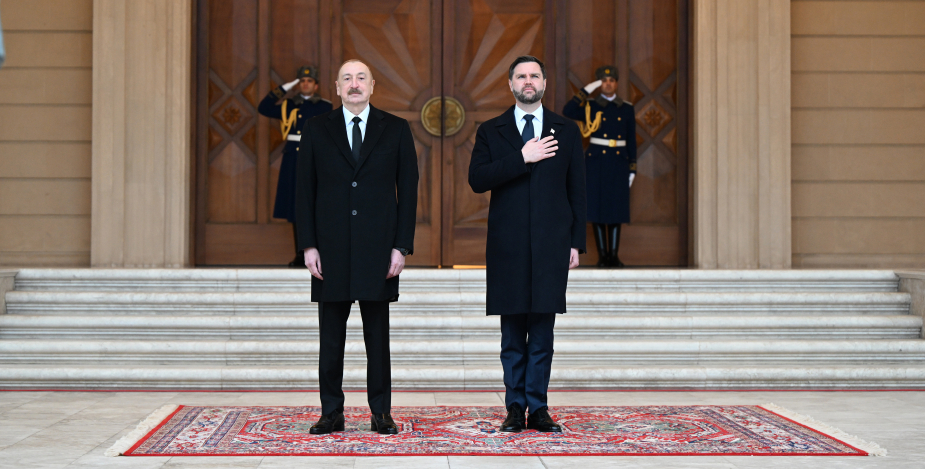 Azərbaycan Prezidenti İlham Əliyev ABŞ-nin Vitse-prezidenti Ceyms Devid Vensi qarşıladı. Fəxri qarovul dəstəsinin rəisi ABŞ-nin Vitse-prezidentinə raport verdi.