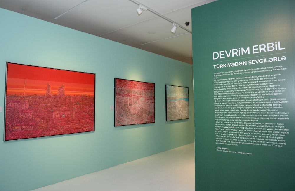 Qeyd edib ki, Heydər Əliyev Mərkəzi fəaliyyəti dövründə bir çox yerli və beynəlxalq tədbirlərlə, konsertlərlə yanaşı türk incəsənətinin nümayişi və təbliğatı istiqamətində bir sıra layihələr həyata keçirib: “Bu istiqamətdə növbəti layihəmiz Devrim Erbilin “Türkiyədən sevgilərlə” adlı fərdi sərgisidir. Sərgidə rəssamın bir sıra məşhur əsərləri nümayiş olunur, o cümlədən bəzi əsərlər ilk dəfə Heydər Əliyev Mərkəzində təqdim edilir. Devrim Erbilin rəsm əsərləri Türkiyənin və dünyanın bir çox muzey kolleksiyalarında yer alıb və bu günədək yüzlərlə sərgisi açılıb. Türkiyənin rəsm sənətinin məşhur simalarından olan D.Erbilin İstanbula həsr edilən əsərləri dünyaca məşhurdur. Mərkəzdəki sərgisində isə müəllifin həm də Bakıya həsr edilən əsərləri ilk dəfə nümayiş olunur”.
