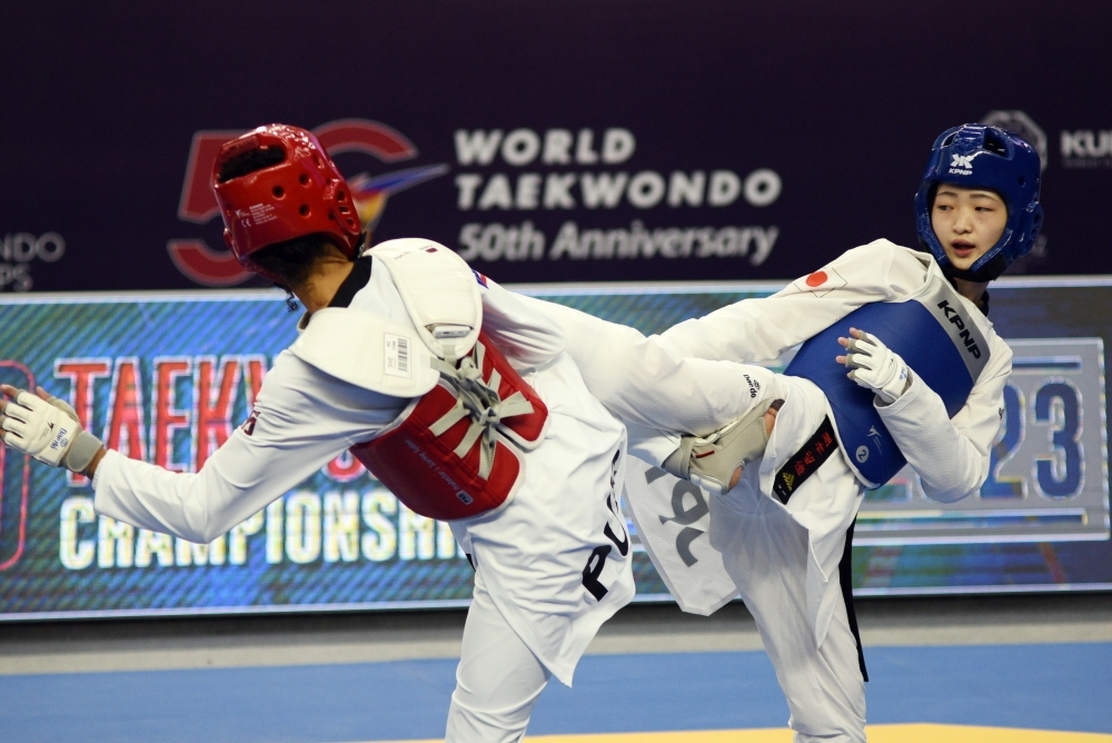 Ulu Öndər Heydər Əliyevin anadan olmasının 100 illik yubileyinə və Dünya Taekvondo Federasiyasının 50 illiyinə təsadüf edən çempionat “Öz gücünü alovlandır” şüarı altında təşkil olunub. Dünya çempionatında 145 ölkədən 949 taekvondoçu 16 çəki dərəcəsində mübarizə aparıb. Dünya çempionu olan idmançı aktivinə 140 reytinq xalı əlavə edib.