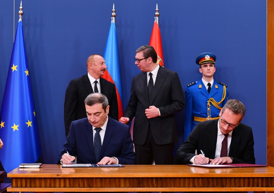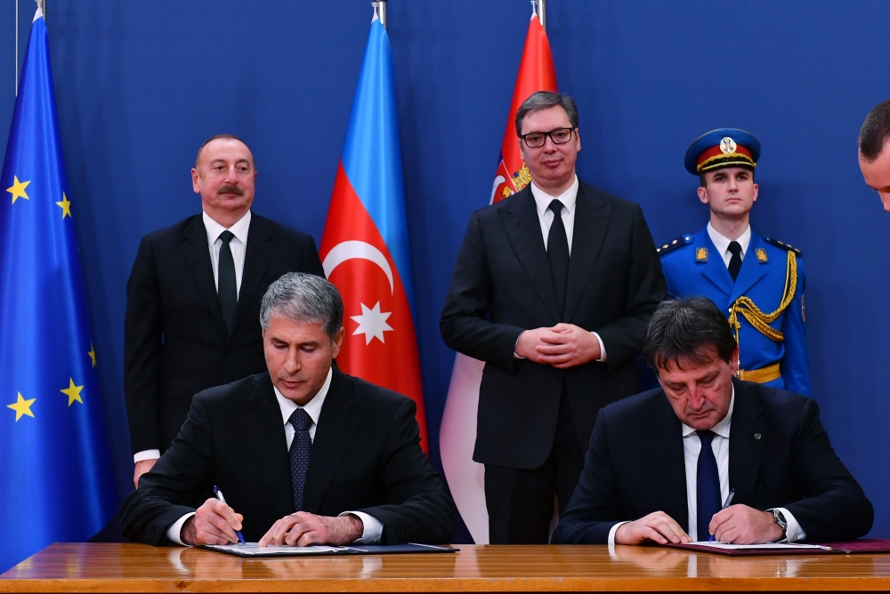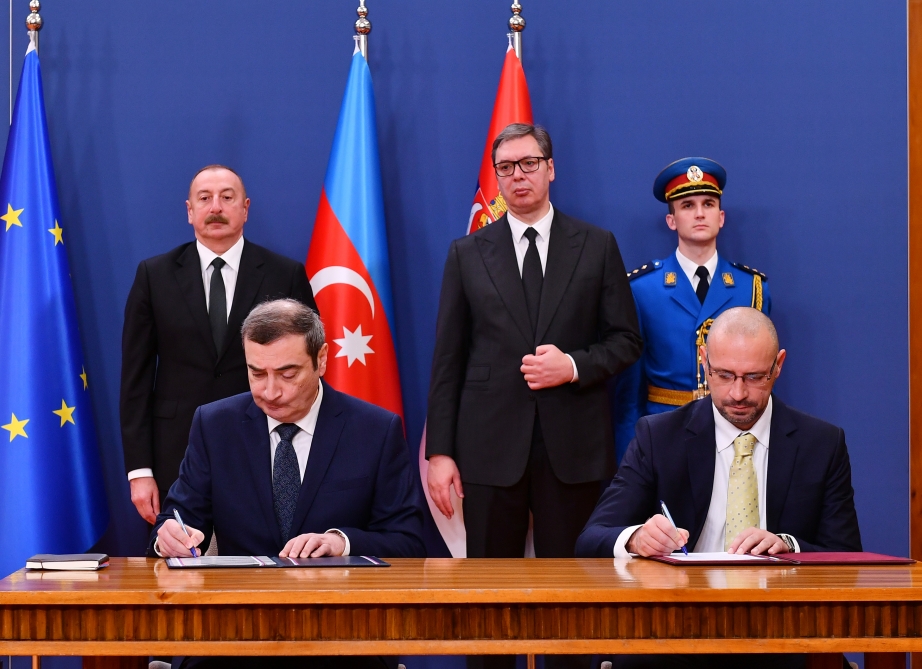 Noyabrın 23-də Belqradda Azərbaycan Respublikasının Prezidenti İlham Əliyevin Serbiya Respublikasının Prezidenti Aleksandar Vuçiç ilə geniş tərkibdə görüşü başa çatdıqdan sonra sənədlərin imzalanması mərasimi olub.