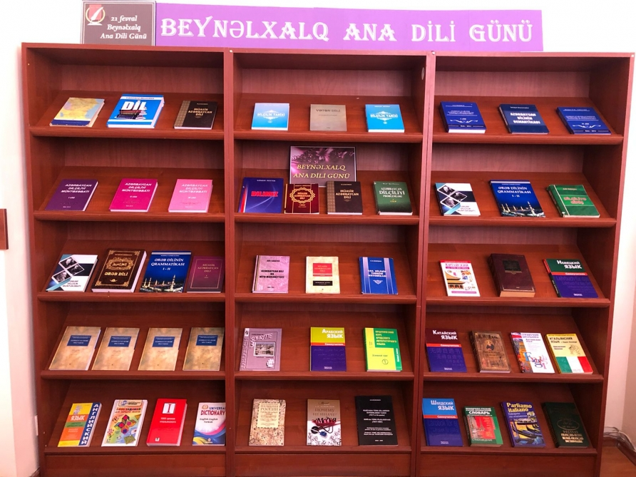Kitabxana əməkdaşları tərəfindən hazırlanan virtual kitab sərgisində Şah İsmayıl Xətai, Mirzə Fətəli Axundov, Cəlil Məmmədquluzadə, Həsən bəy Zərdabi, Firudin bəy Köçərli kimi görkəmli ədəbiyyat nümayəndələrinin dil və dilçilik haqqında söylədikləri müdrik ifadələr yer alıb. Burada Beynəlxalq Ana Dili Günü haqqında “Heydər Əliyevin dil siyasəti”, “Qədim Türk yazılı abidələrinin dili”, “Xarici dildə ünsiyyət”, “Dillərin inkişafında dil əlaqələrinin rolu” kimi 15-dən çox kitabın biblioqrafik təsviri təqdim edilib.
