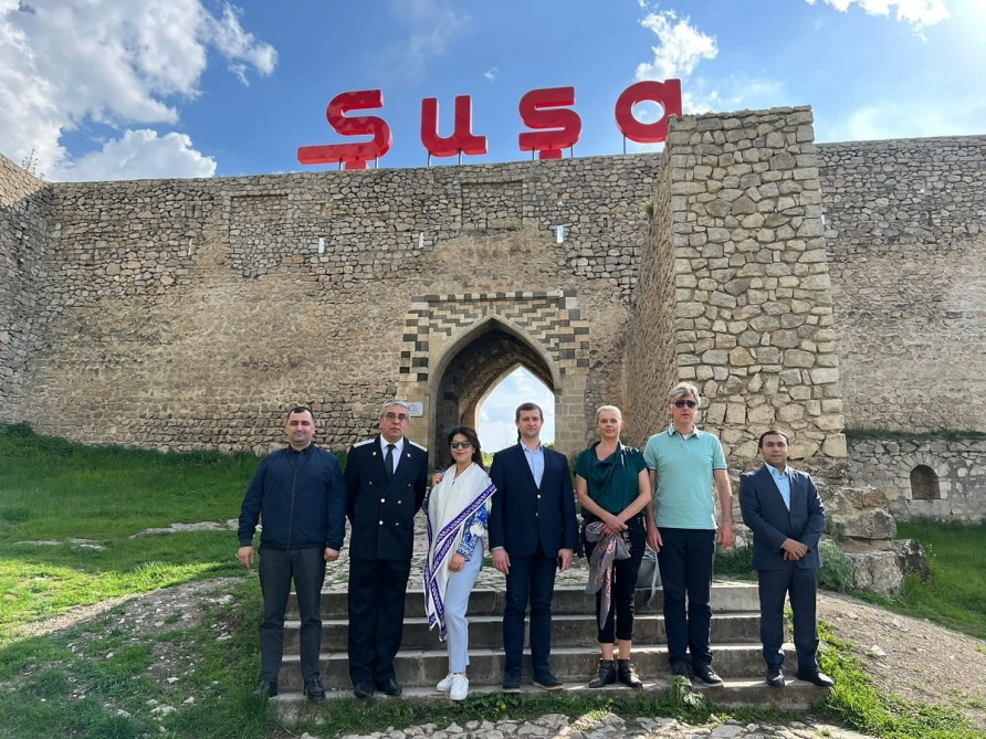 Qonaqlar erməni vandalizminə məruz qalmış və işğal bitdikdən sonra ölkə başçısının rəhbərliyi ilə əvvəlki görkəmində tam bərpa edilmiş Vaqifin məqbərəsini, tarixi Qala divarlarını, Azərbaycan vokal sənətinin banisi Bülbülün ev muzeyini ziyarət ediblər.