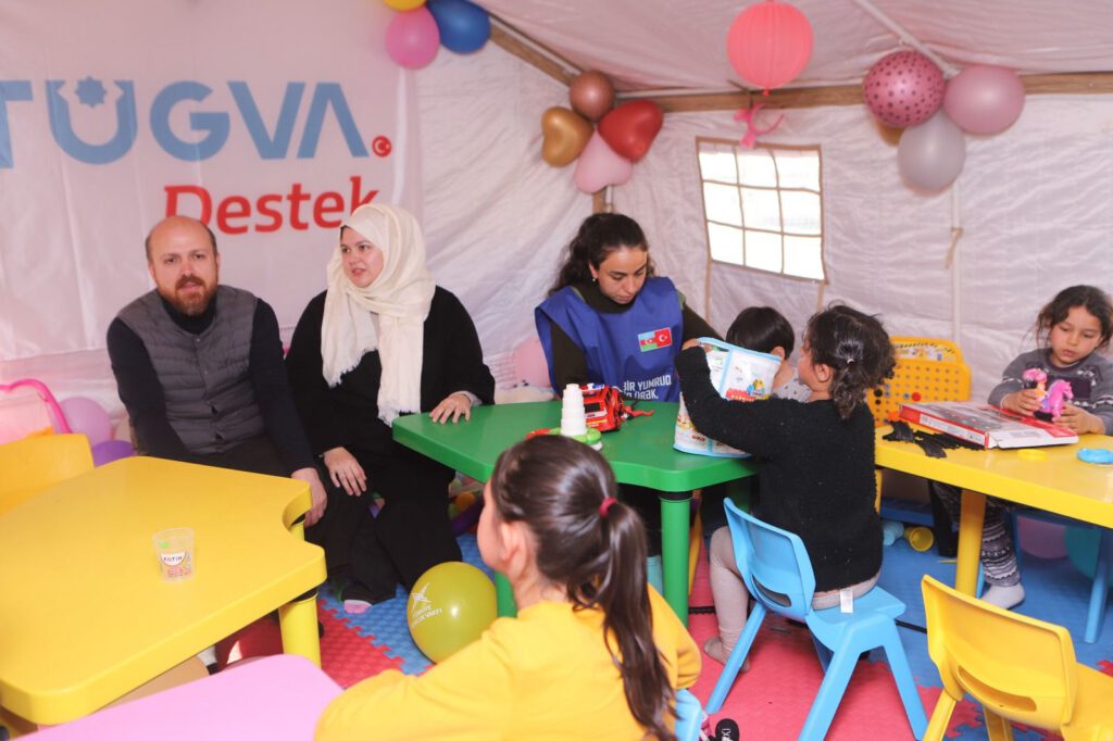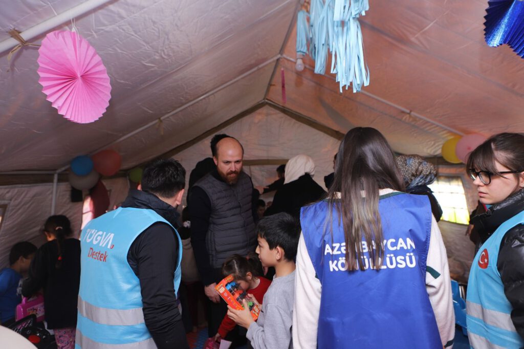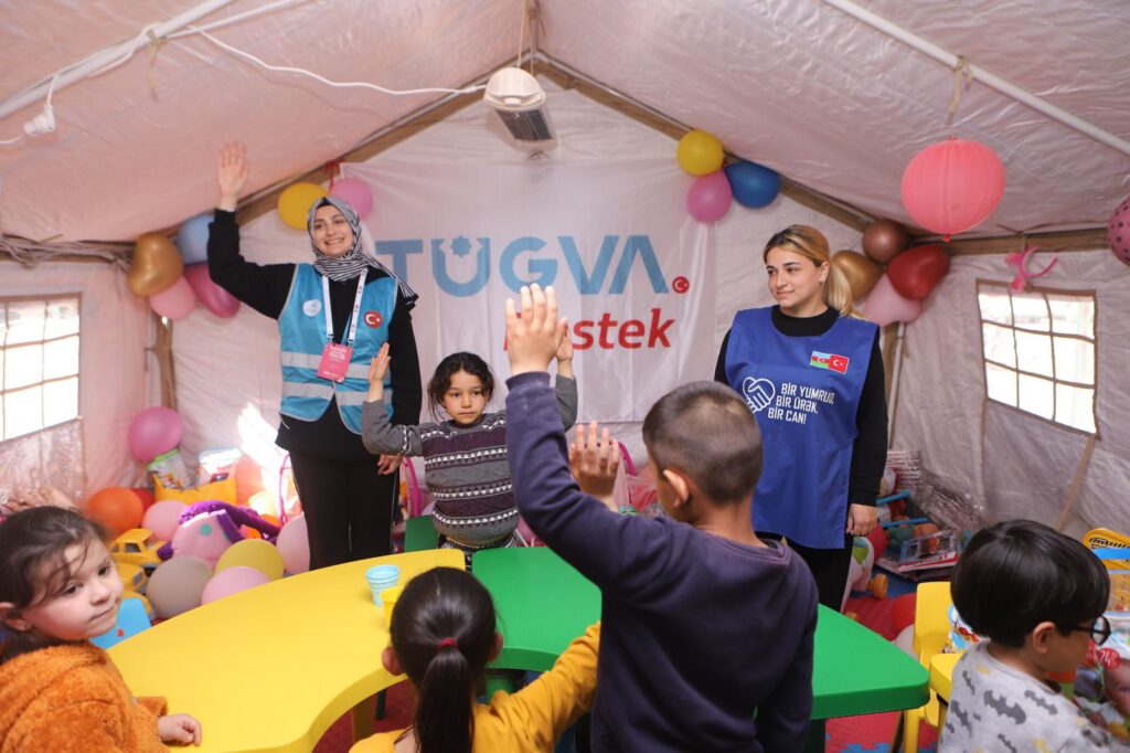 Eyni zamanda, Azərbaycan könüllüləri zəlzələdən zərərçəkmiş uşaqların reabilitasiyası və asudə vaxtının səmərəli təşkili məqsədilə xüsusi çadırlar quraşdırır, habelə təbii fəlakət zamanı uşaqların keçirdiyi sarsıntıları, yaşadıqları travmaları minimuma endirmək üçün yüzlərlə uşağa qayğı və psixoloji dəstək xidməti göstərirlər. Bununla yanaşı, tibb təhsilli könüllülərimiz yerli əhaliyə ilkin tibbi yardım göstərdikdən sonra peşəkar həkimlərə yönəldir, eləcə də səyyar apteklərdə zərərçəkənlərə xidmət edirlər.