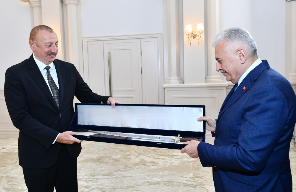 Görüş zamanı Binəli Yıldırım dövlətimizin başçısına xatirə hədiyyəsini təqdim edərək bildirib ki, bu, İstanbulu fəth edən Fateh Sultan Mehmedin qılıncının eynisidir və Qarabağın fatehi Prezident İlham Əliyevə hədiyyə olunur.