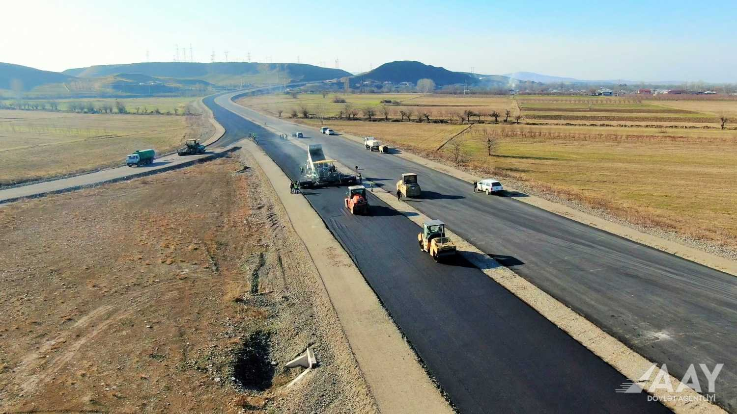 Ümumilikdə layihəyə əsasən torpaq yatağının tikintisi yekunlaşır, bundan başqa hazırda dənəvər tərkibli əsasın tikintisi, suöütürücü boruların, alt keçidlərin və körpülərin inşası işləri davam etdirlir. Buna paralel olaraq qırmadaşlı əsasın tikintisi və asfalt-beton örtüyünün döşənməsi işləri də görülür.