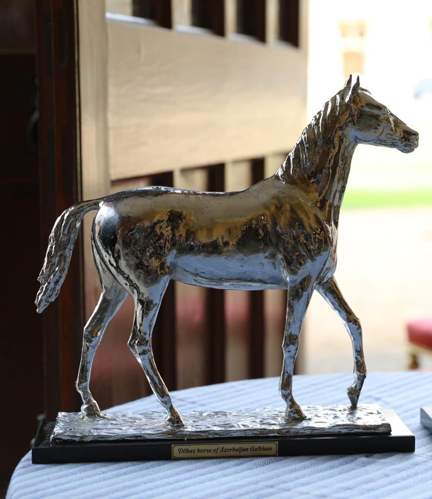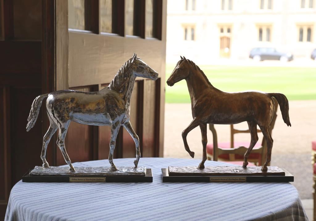 Daha sonra Azərbaycanın tanınmış heykəltəraşı Faiq Hacıyevin yaratdığı “Alxan” adlı Qarabağ, “Qalxan” adlı Dilbaz atlarının heykəlləri Kraliçaya hədiyyə olunub.