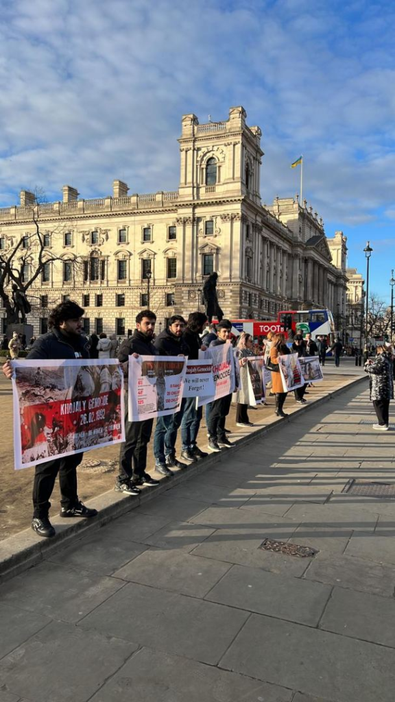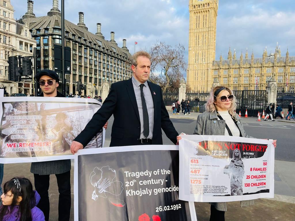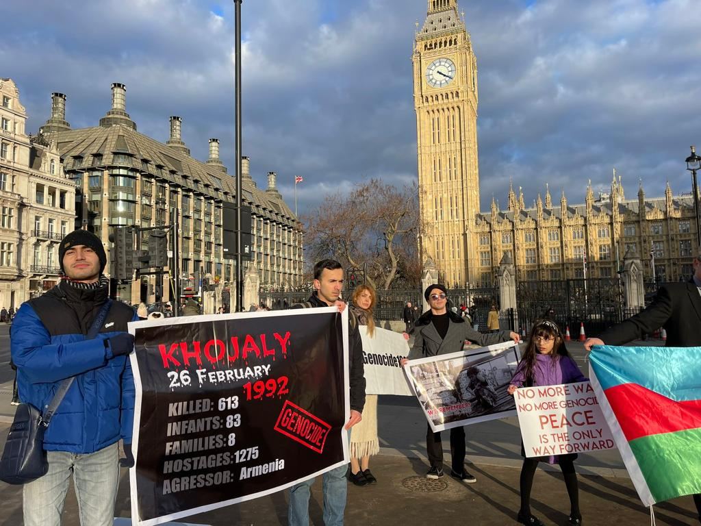 Böyük Britaniya parlamentinin qarşısında Xocalı soyqırımının 31-cu ildönümü ilə əlaqədar “Xocalıya ədalət!” beynəlxalq təbliğat və təşviqat kampaniyası çərçivəsində dinc aksiya keçirilib.