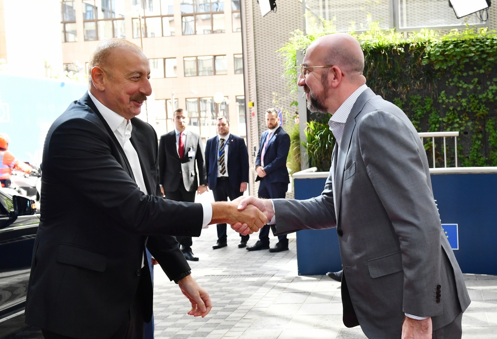 Avropa İttifaqı Şurasının mənzil-qərargahında Avropa İttifaqı Şurasının Prezidenti Şarl Mişel dövlətimizin başçısı İlham Əliyevi qarşılayıb.