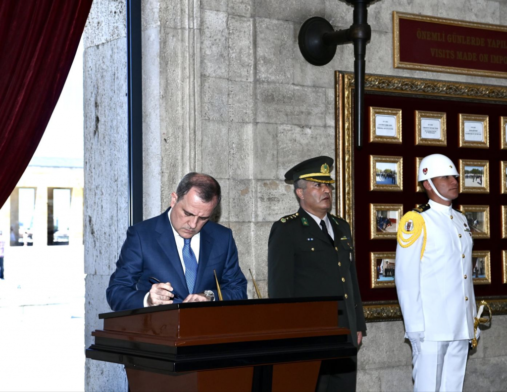 Xarici işlər naziri Ceyhun Bayramov Türkiyəyə rəsmi səfəri çərçivəsində Türkiyə Cümhuriyyətinin qurucusu, Qazi Mustafa Kamal Atatürkün dəfn olunduğu Anıtqəbir məqbərəsini ziyarət edərək, böyük öndərin məzarının önünə əklil qoyub.