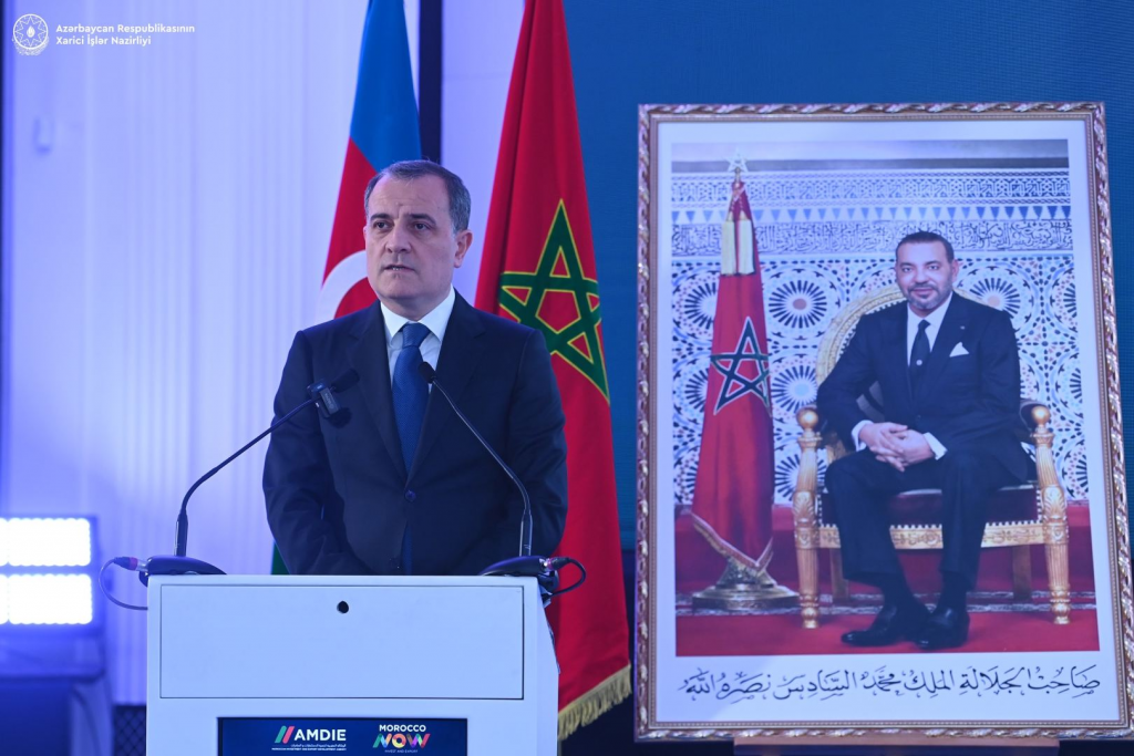 Mərakeşə rəsmi səfəri çərçivəsində xarici işlər naziri Ceyhun Bayramov Birinci Azərbaycan-Mərakeş Biznes Forumunda çıxış edib.