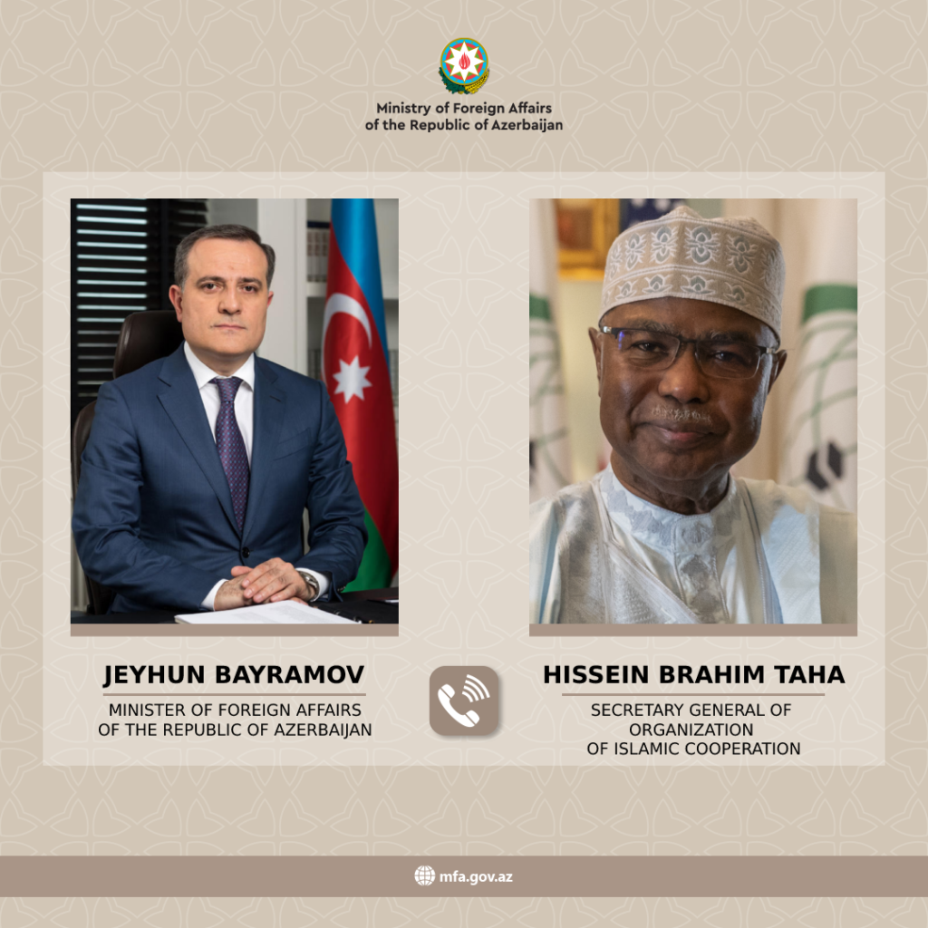 18 aprel 2023-cü il tarixində Azərbaycan Respublikasının xarici işlər naziri Ceyhun Bayramovun İslam Əməkdaşlıq Təşkilatının (İƏT) Baş katibi Hissein Brahim Taha ilə telefon danışığı baş tutub.