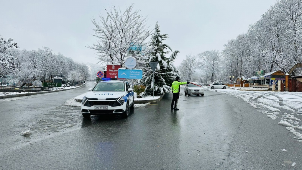 DİN: POLİS ƏMƏKDAŞLARI HAVA ŞƏRAİTİ İLƏ ƏLAQƏDAR GÜCLƏNDİRİLMİŞ REJİMDƏ FASİLƏSİZ XİDMƏT APARIR