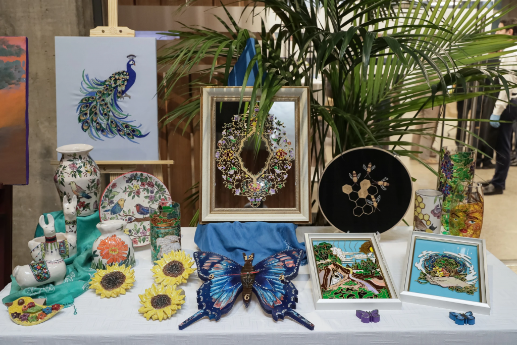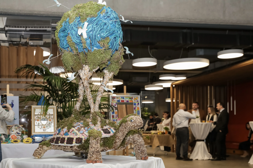 İştirakçılar layihə çərçivəsində DOST İnklüziv İnkişaf və Yaradıcılıq Mərkəzinin benefisiarları olan həssas qruplara aid şəxslərin və Mərkəzin təlimçilərinin istifadəyə yararlı olmayan məhsullardan, eko və bio materiallardan hazırladıqları 50-dək əl işindən ibarət sərgi ilə tanış olublar. Floristika, dulusçuluq, təsviri incəsənət, vitraj, bədii oyma növlərində ərsəyə gətirilmiş sənət nümunələri tədbir iştirakçıları tərəfindən maraqla qarşılanıb.