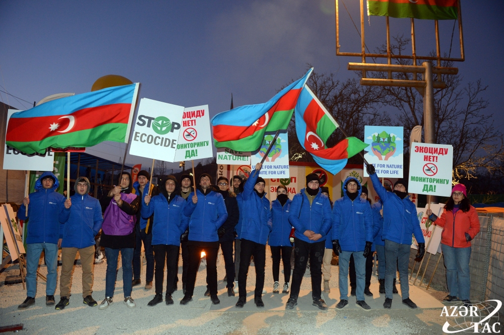 Qeyd edək ki, aksiya iştirakçıları Qarabağda faydalı qazıntı yataqlarının qanunsuz istismarına etirazlarının əks olunduğu şüarların əks edildiyi plakatlar qaldırır, şüarlar səsləndirirlər.