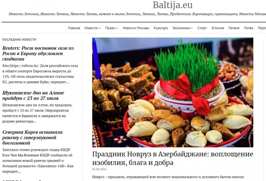 Estoniyanın “Baltija.eu” internet nəşrində “Azərbaycanda Novruz bayramı: ruzi-bərəkətin, firavanlığın və xeyirxahlığın təcəssümü” adlı məqalə dərc edilib.