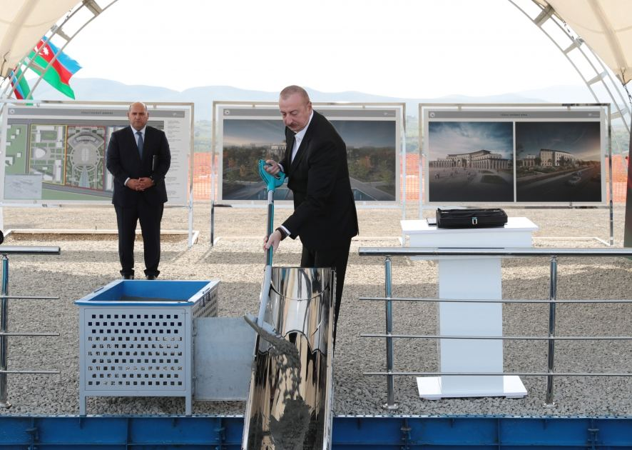 Dövlətimizin başçısı inzibati binanın təməlini qoyub.