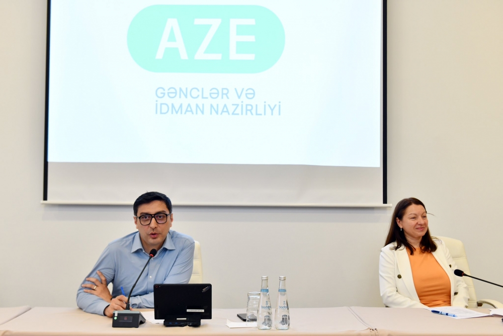 İdmançıların təəssüratlarını dinləyən gənclər və idman naziri onlara qarşıdakı yarışlarda da uğurlar arzulayıb.