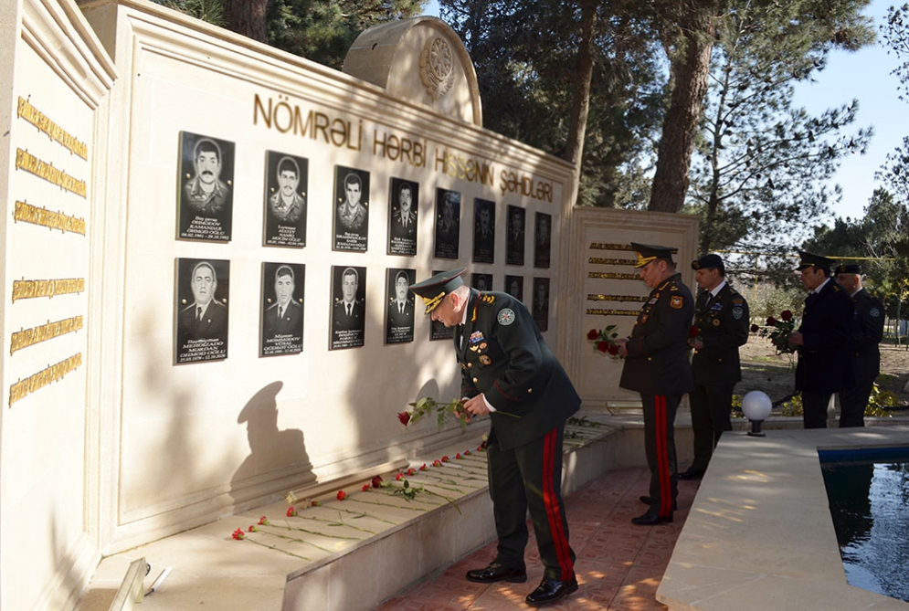 Sonra Hərbi Dəniz Qüvvələrinin hərbi hissəsinə gələn gürcüstanlı nümayəndələr burada şəhidlərin xatirəsinə ucaldılan abidə önünə gül dəstələri düzüblər.
