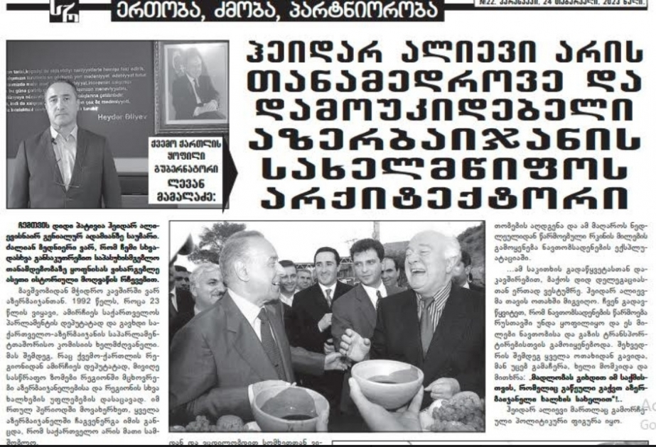 Gürcüstanın nüfuzlu “Sakartvelos Respublika” (Gürcüstan Respublikası) qəzetində “Heydər Əliyev müasir və demokratik Azərbaycan dövlətinin memarıdır” sərlövhəli məqalə dərc olunub.