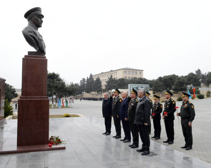 Sonra hərbi lisey şəhərciyində xalqımızın igid oğlu Cəmşid Naxçıvanskinin şərəfinə ucaldılan abidə qarşısına gül dəstələri düzülərək ehtiram nümayiş olunub.