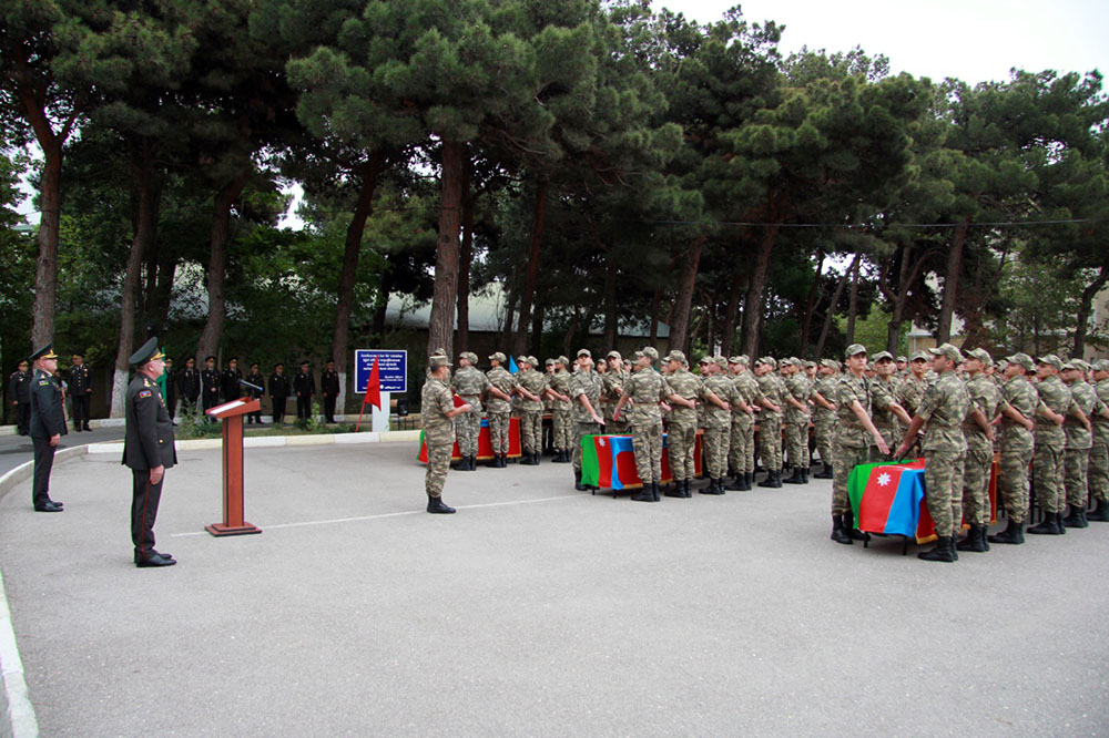 Müdafiə Nazirliyindən bildirilib ki, buraxılış mərasimlərində əvvəlcə hərbi orkestrin müşayiəti ilə döyüş bayrağı təntənəli şəkildə sıra meydanına gətirilib.