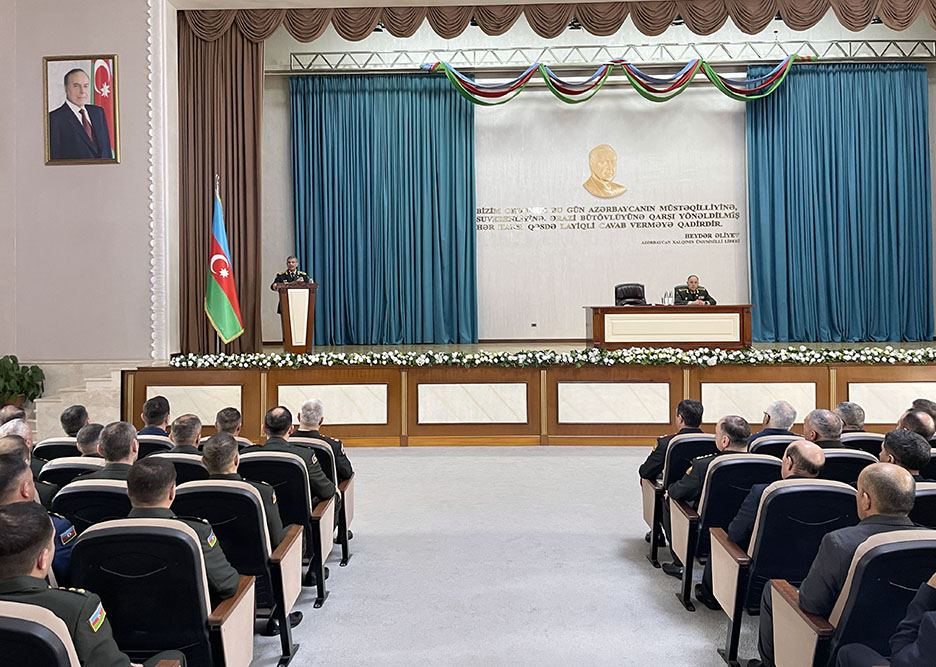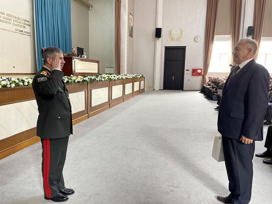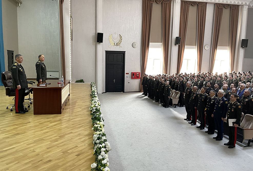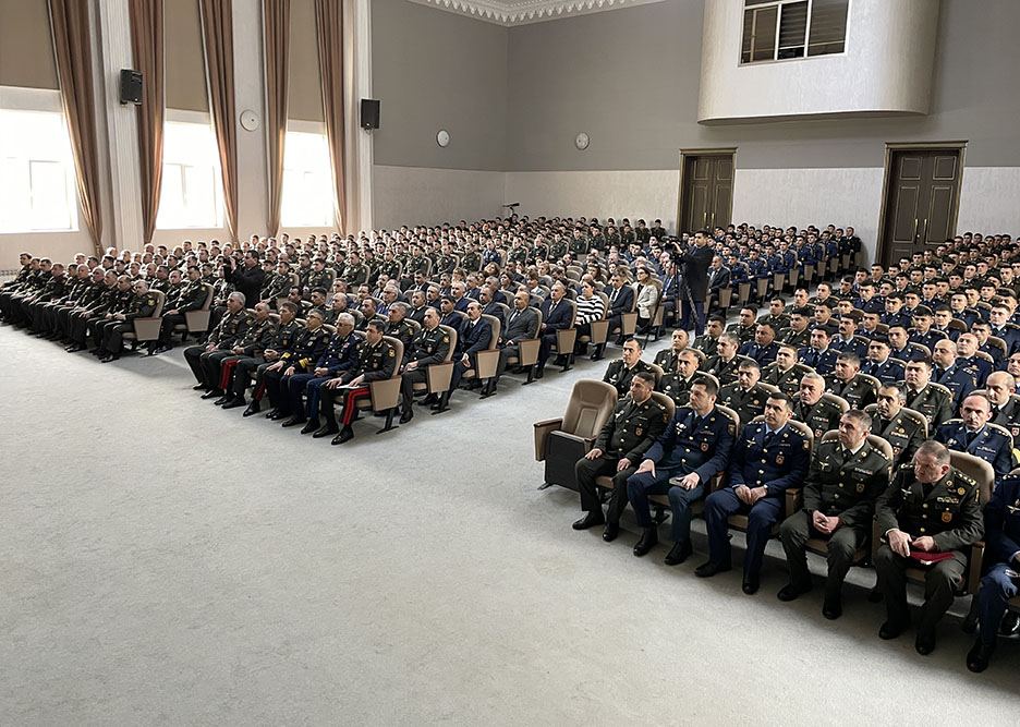 Hərbi institutun zabit, kursant və professor-müəllim heyətinin iştirakı ilə keçirilən tədbirdə müdafiə naziri general-polkovnik Z.Həsənov çıxış edib.
