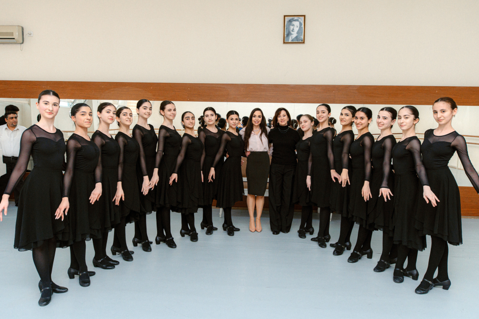 Leyla Əliyeva Bakı Xoreoqrafiya Akademiyasının rəhbərliyi, şagird və tələbələri, pedaqoji heyəti ilə görüşüb, akademiyanın fəaliyyəti, eləcə də dərs otaqları və məşq zalları ilə tanış olub.