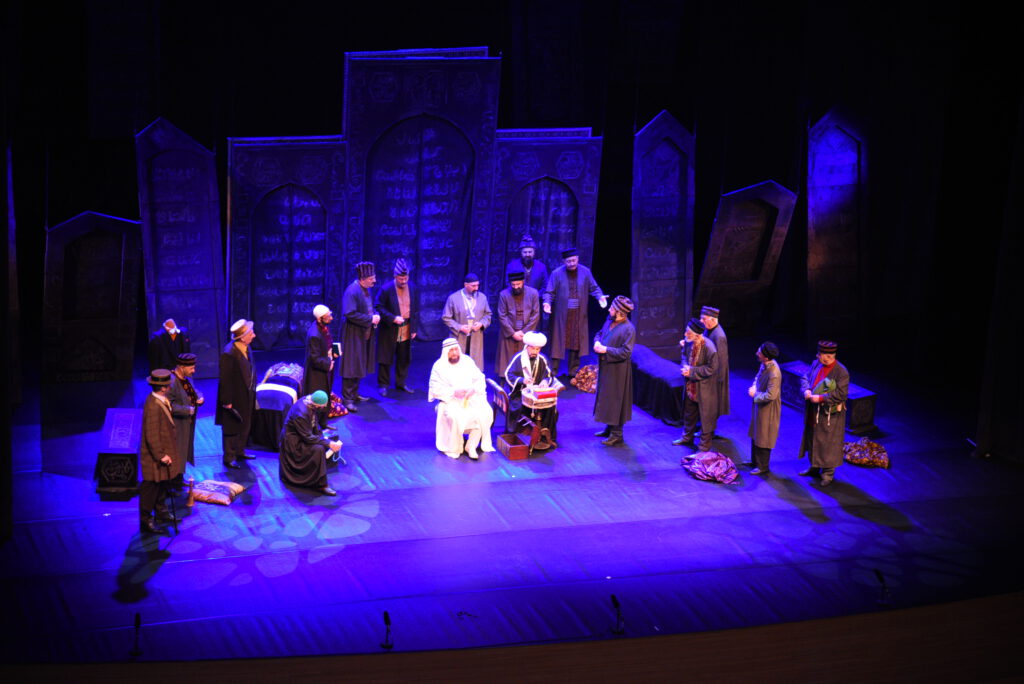 Tamaşadan əvvəl ulu öndərin əsərlə bağlı fikirlərini əks etdirən videoçarx təqdim olunub. “Ölülər” pyesini dərin fəlsəfi əsər adlandıran ulu öndər onun milli ruhunu xüsusi vurğulayırdı, pyesin bənzərsiz, tarixi əsər olduğunu qeyd edirdi. Heydər Əliyev hələ gənc yaşlarından teatra çox bağlı idi. Məktəb və tələbəlik illərində dram dərnəklərində səhnədə çıxışlar edən Heydər Əliyev teatrı çox sevirdi və o, Azərbaycan milli teatrını bizim milli sərvətimiz adlandırırdı.