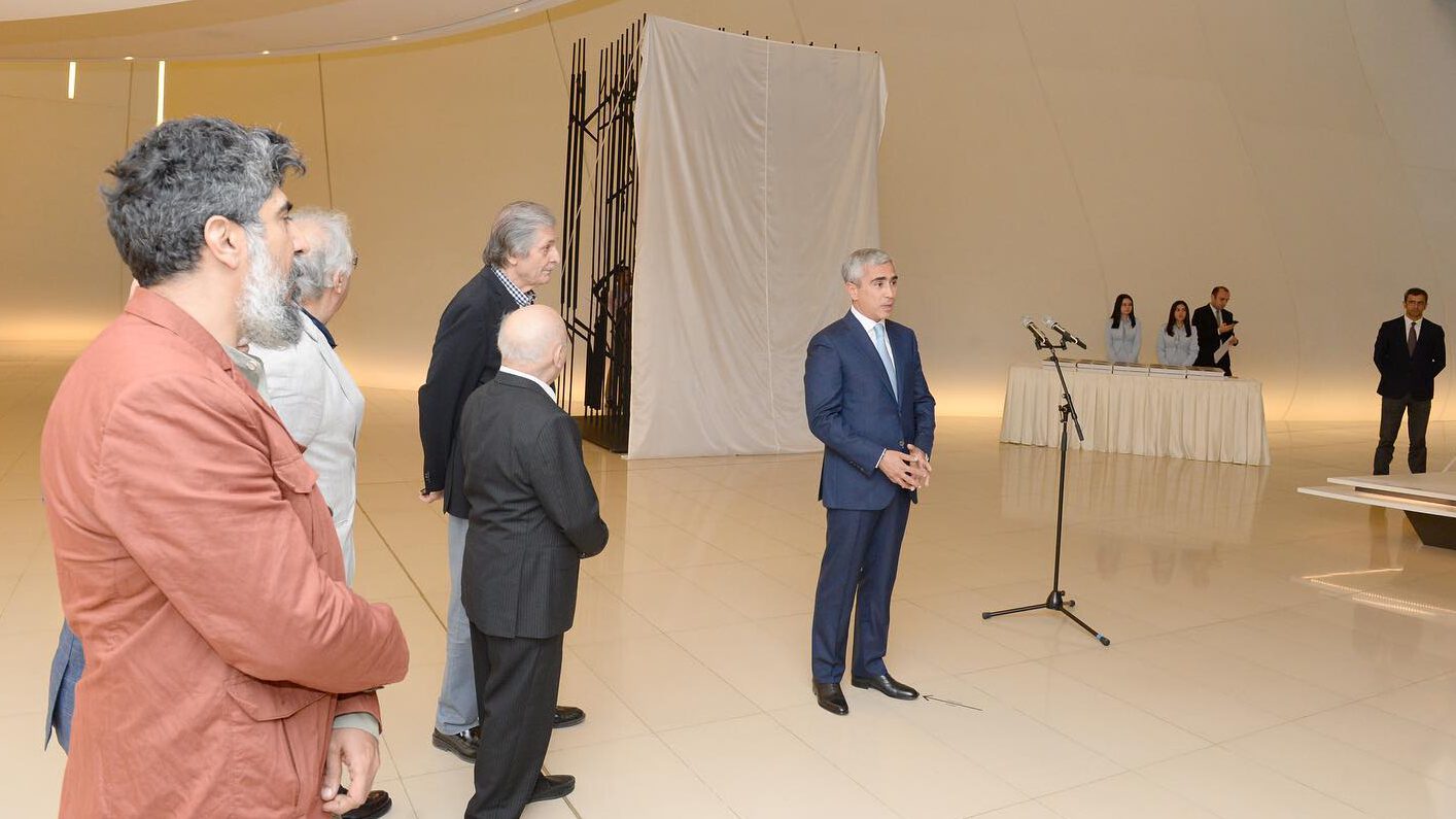 Daha sonra qonaqlara Əməkdar rəssam Rəşad Ələkbərov tərəfindən XX əsrin ikinci yarısına aid optik incəsənət olan, müstəvi məkan fiqurlarının xüsusiyyətlərinə əsaslanan “op-art” bədii cərəyanı tərzində hazırlanmış instalyasiya təqdim olunub. 4 aydan çox müddətə hazırlanmış əsər Heydər Əliyevin portretini canlandırır. Bədii vasitə kimi Ulu Öndər Heydər Əliyevin 100 illiyini simvolizə edən 100 metal dirək və onların arasındakı işıq zolağından istifadə edən müəllif dahi şəxsiyyətin əbədiyyətini göstərir.