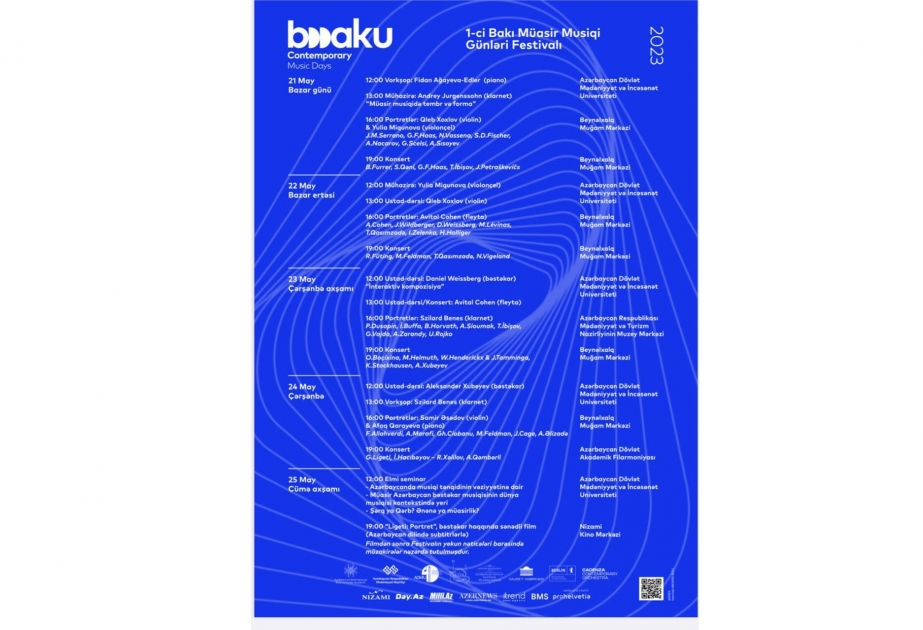 Festivalın açılış konserti mayın 21-də saat 19:00-da Beynəlxalq Muğam Mərkəzində gerçəkləşəcək. Müasir musiqi layihəsi Nizami Kino Mərkəzində “Ligeti: portret” filminin nümayişi (25 may, 19:00) ilə başa çatacaq.