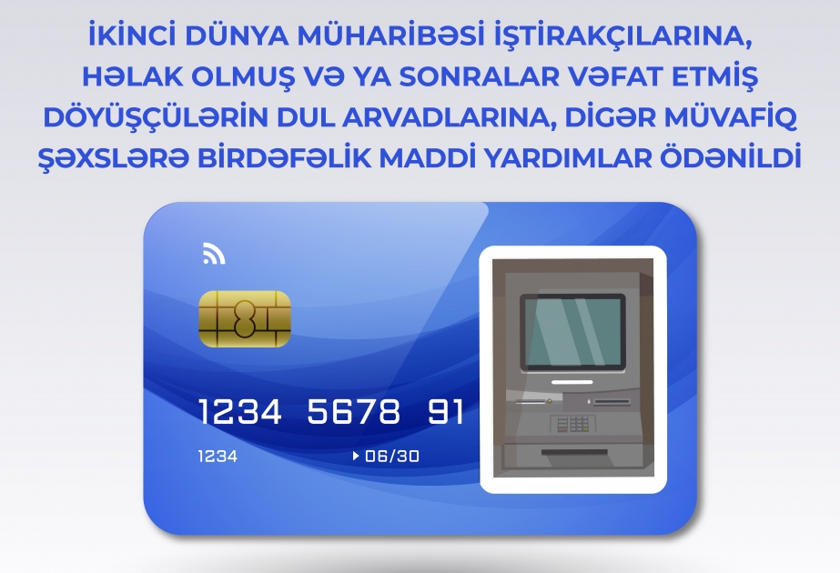 Əmək və Əhalinin Sosial Müdafiəsi Nazirliyinin İctimaiyyətlə əlaqələr şöbəsindən verilən məlumata görə, İkinci Dünya müharibəsində Qələbənin 78-ci ildönümü ilə əlaqədar həmin müharibənin iştirakçısı olmuş 51 nəfərin hər birinə 1500 manat, İkinci Dünya müharibəsində həlak olmuş və ya sonralar vəfat etmiş döyüşçülərin dul arvadlarına, həmin dövrdə arxa cəbhədə fədakar əməyinə görə orden və medallarla təltif edilmiş şəxslər, İkinci Dünya müharibəsi illərində döyüş cəbhələrinin arxa hüdudları, yaxud döyüşən donanmaların əməliyyat zonaları daxilində ordunun və donanmanın mənafeyi üçün tapşırıqları yerinə yetirmiş xüsusi birləşmələrin işçiləri, İkinci Dünya müharibəsi dövründə Leninqrad şəhərinin müdafiəsinə görə müvafiq medal və döş nişanı ilə təltif edilmiş şəxslər, habelə Leninqrad şəhərinin mühasirəsi iştirakçılarından ibarət 3 min 487 nəfərin hər birinə isə 750 manat məbləğində birdəfəlik yardım verilib.